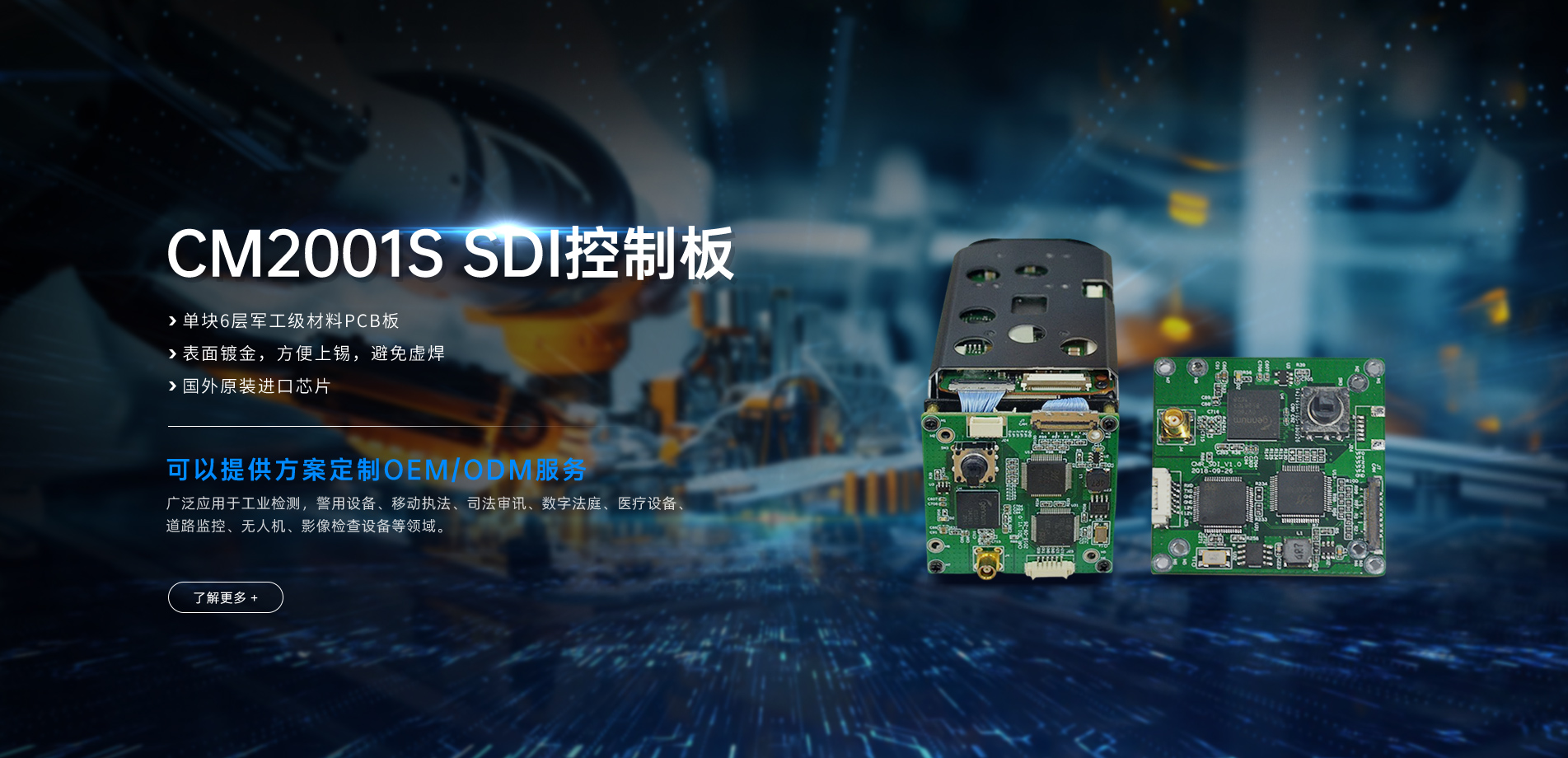 應用于手術直播攝像機、無人機航拍、工業(yè)檢測視頻設備、機器人攝像頭、監(jiān)控視頻、視頻會議、教學錄播、審訊系統(tǒng)及其他特殊行業(yè)。
